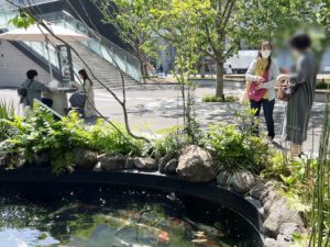 池と鯉と木々の緑に癒されます。