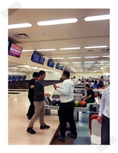 ↓8レーンを借りて、ボーリング大会。もちろん、賞品あり!