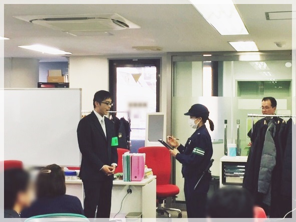 講義では、地域課(交番)のおまわりさんにも来所いただき、万が一疑われしまった場合(通報された場合)の対応方法もご教示いただきました。