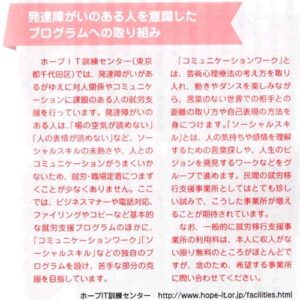 「コミュニケーション・ワーク」や「ソーシヤルスキル・トレーニング」が、「民間の就労移行支援事業所としては、とてもめずらしい試み」として、紹介されています。